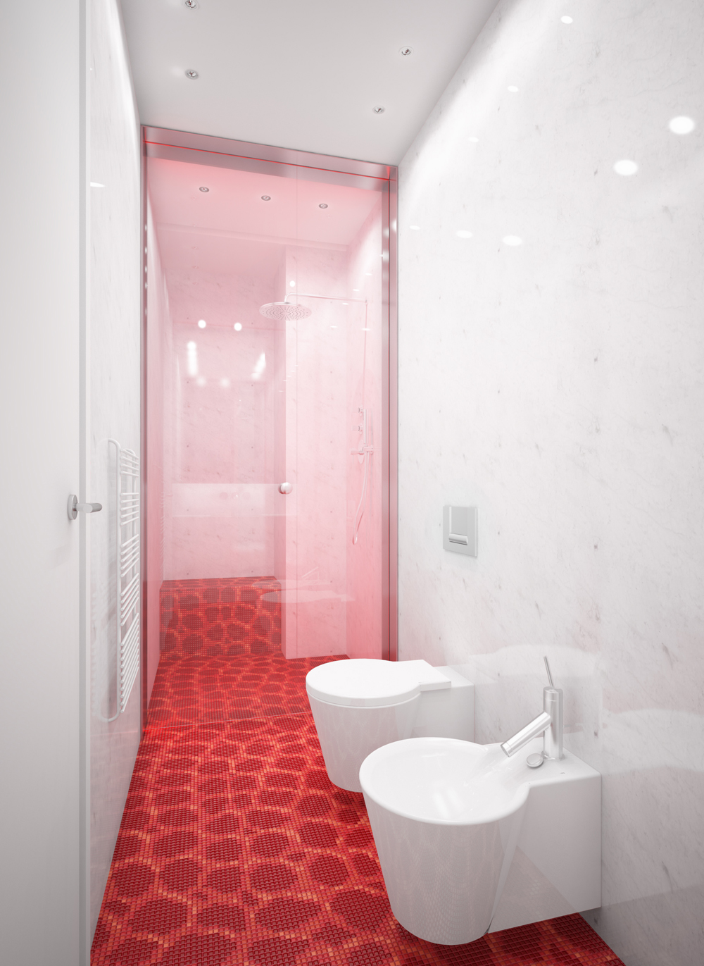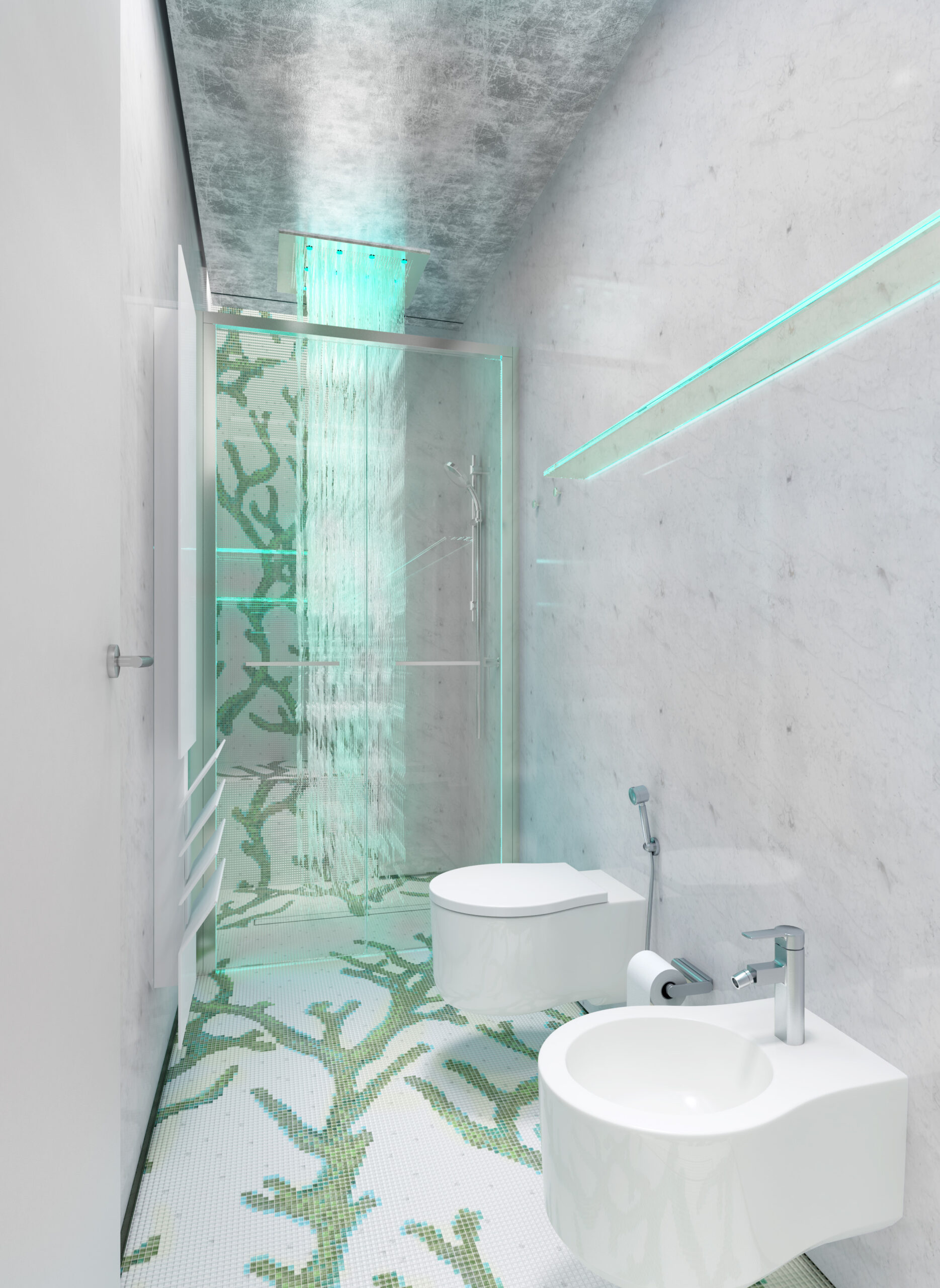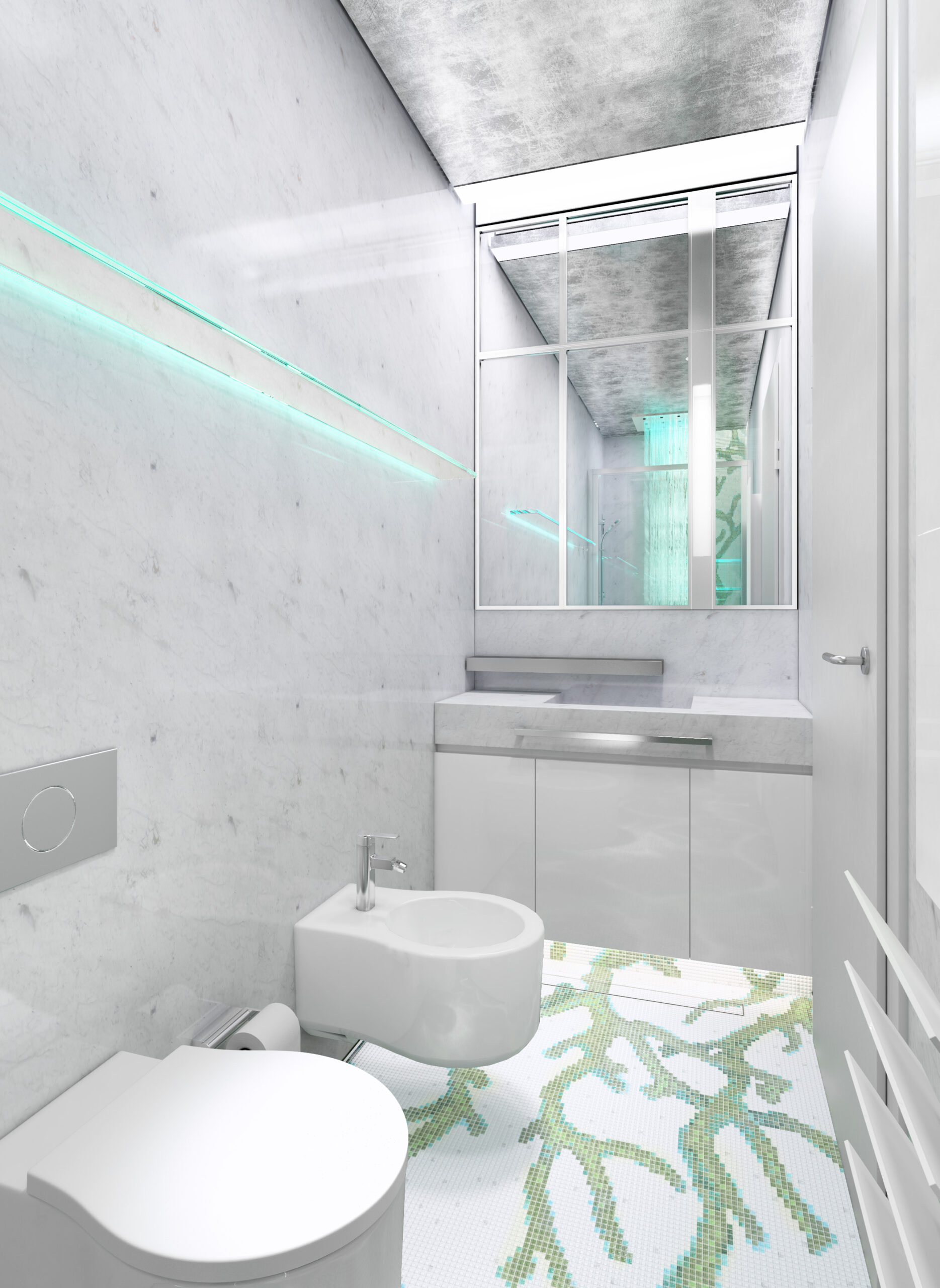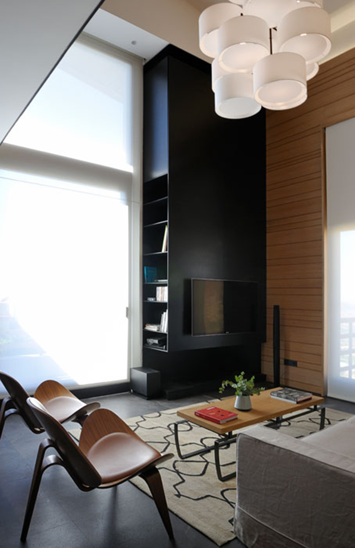 In this curated Duplex in Mount Lebanon, French oak wood becomes a multi-purpose marvel. A sliding door, shelves, hooks, and radiators seamlessly merge with the natural beauty of the wood, transforming the wall cladding into a functional piece. The wood extends its reach to embrace the kitchen cabinets and balustrade in the mezzanine. The black iron chimney ascends to become a sculptural element that draws the eye upward. The concrete kitchen island offers a spacious and versatile workspace for meal preparation, casual dining, and entertaining. The selected wallpaper in the bedrooms becomes the backdrop of this intimate retreat, instantly infusing the space with warmth and character. Toilets are made of exquisite mosaics and marble stone.