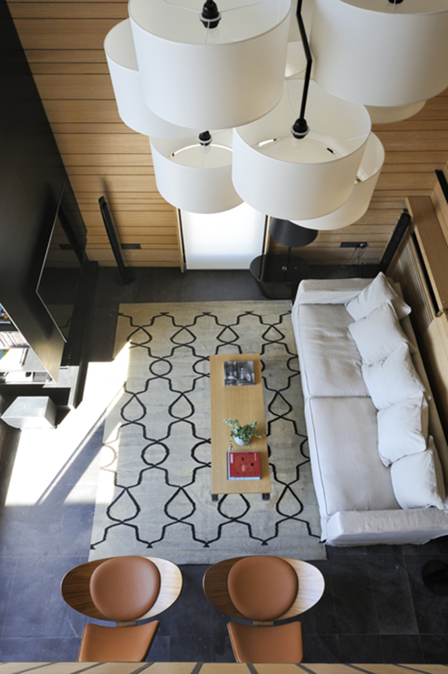 Dans ce duplex soigneusement conçu au Mont-Liban, le chêne français devient une merveille polyvalente. Une porte coulissante, des étagères, des crochets et des radiateurs fusionnent harmonieusement avec la beauté naturelle du bois, transformant le revêtement mural en une pièce fonctionnelle. Le bois s’étend pour englober les armoires de cuisine et la balustrade de la mezzanine. La cheminée en fer noir s’élève pour devenir un élément sculptural qui attire le regard vers le haut. L’îlot de cuisine en béton offre un espace de travail spacieux et polyvalent pour la préparation des repas décontractés et divertissants. Le papier peint sélectionné dans les chambres devient l’arrière-plan de cette retraite intime, insufflant instantanément de la chaleur et du caractère à l’espace.